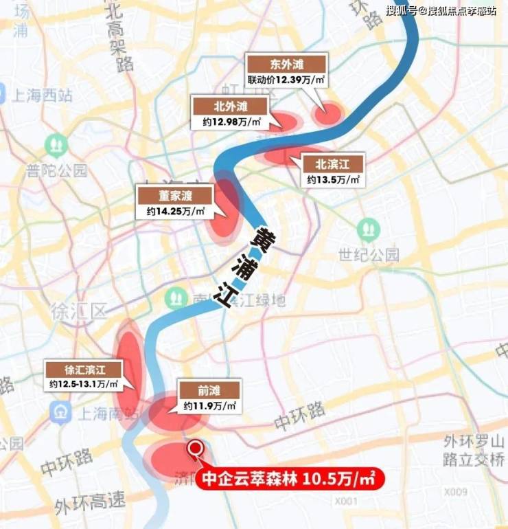 论居住价值、论地段价值、论规划潜力、论发展资源倾斜程度,黄浦江沿岸永远都站在上海无法逾越的高空之上。这点从沿岸的新房价格中就能看出来: