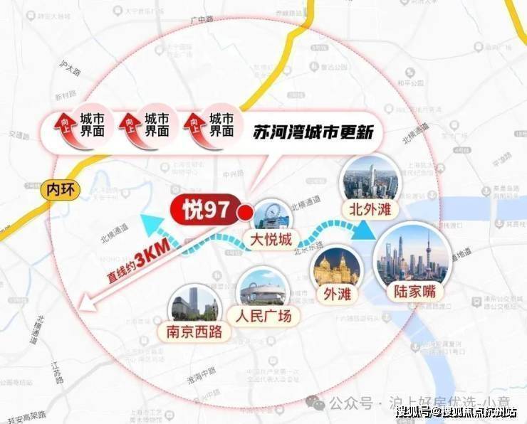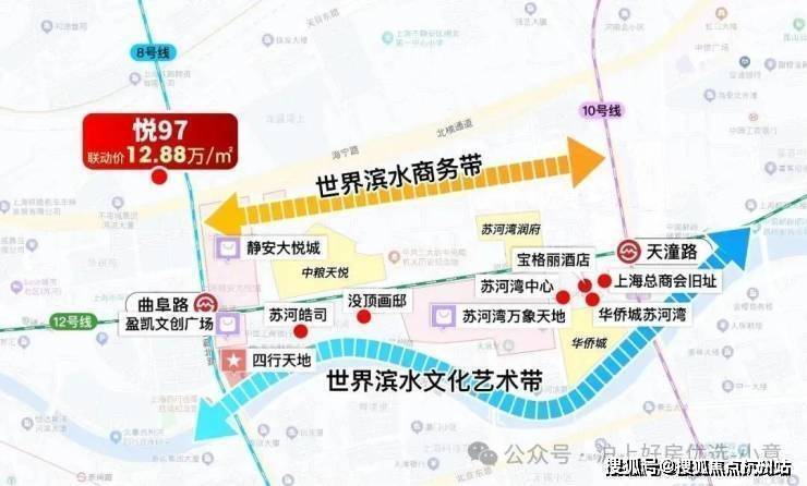 回过来看悦97,它是真正的苏河湾核心位置,真正揽尽了苏河湾的精华!