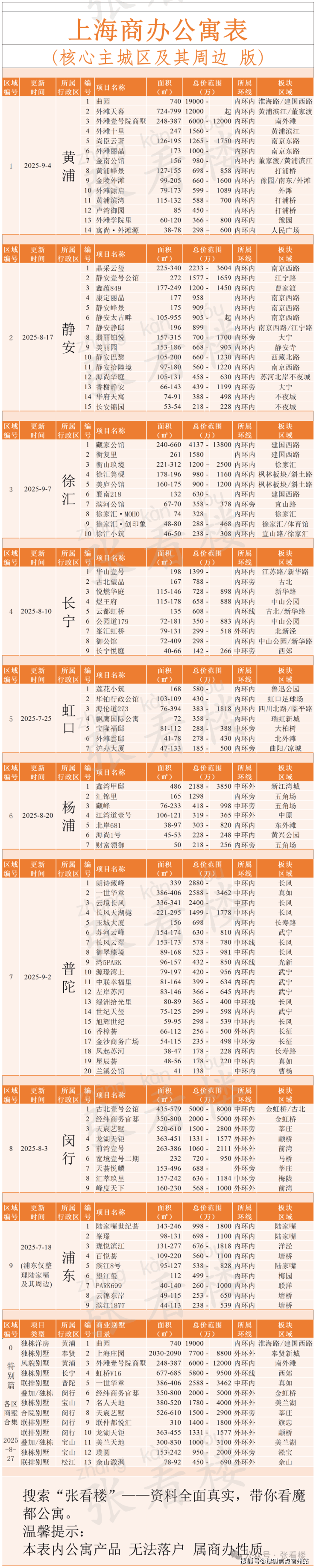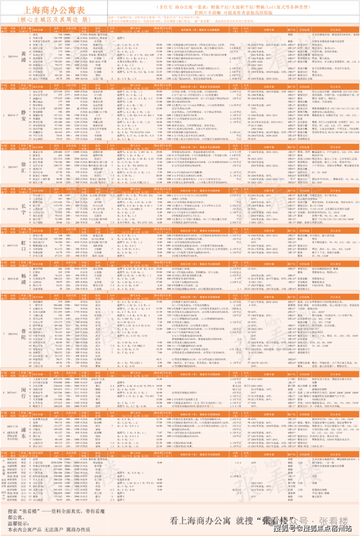 附赠看楼兄整理的上海商办公寓表(会被压缩,若需高清原版请联系作者获取)。