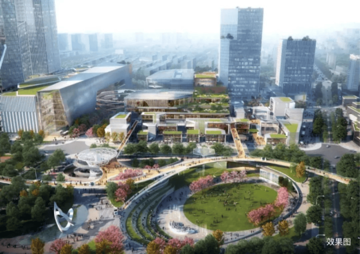 一个“商业+住宅+产业+绿化”的复合多元城市区拔地而起。