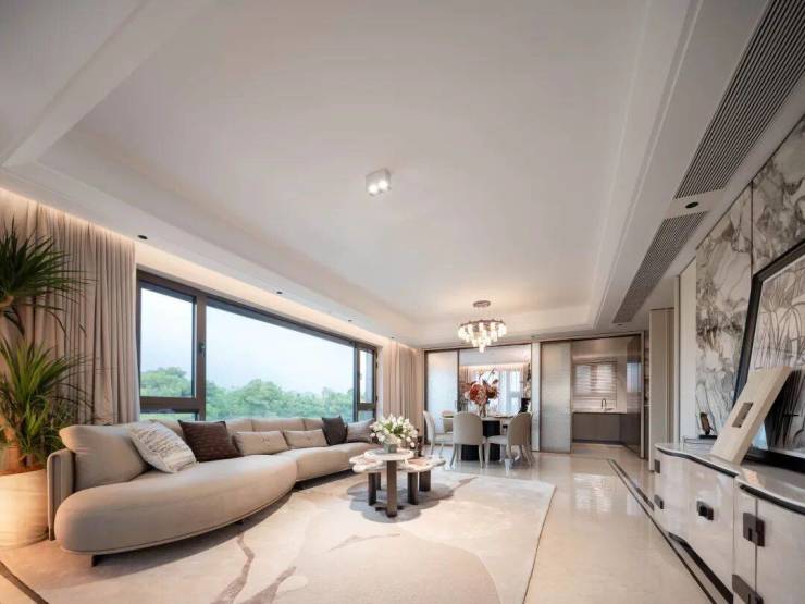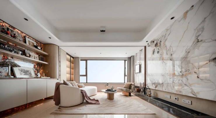 项目臻选全球顶尖家居配置,玄关处土耳其进口奥特曼淡米黄迎宾,延续至室内大面积奥特曼米黄天然石材铺装,精致隐奢。