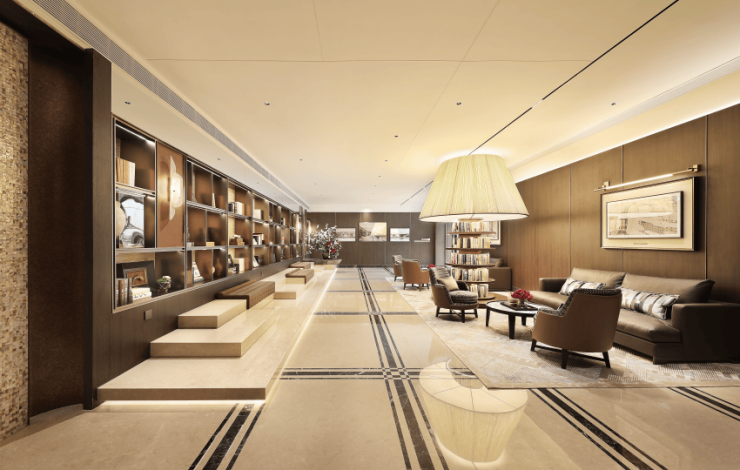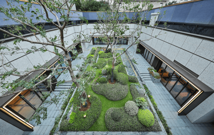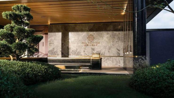 从意大利爱马仕灰到普拉达绿,项目内部以尊贵石材勾勒出了景观轮廓。