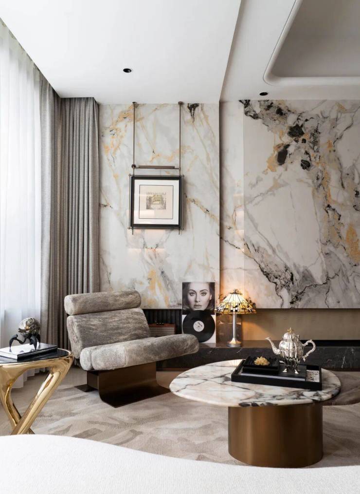 以及会所空间甄选的泫雅棕与威尼斯棕大理石,呈现出了自然韵律的高级美态。