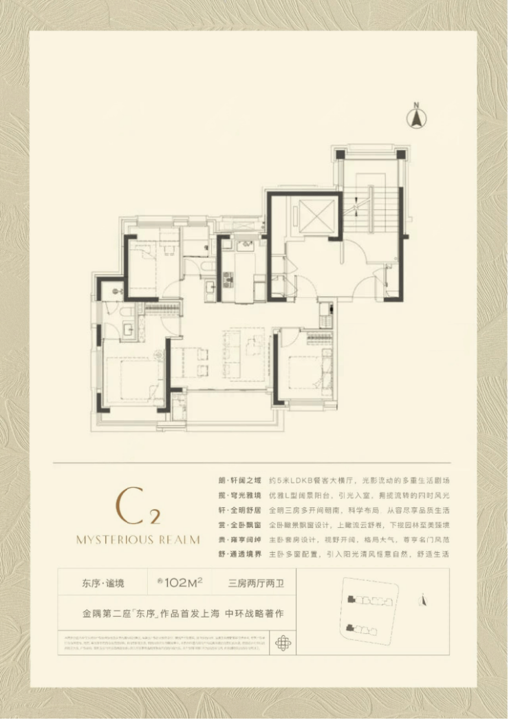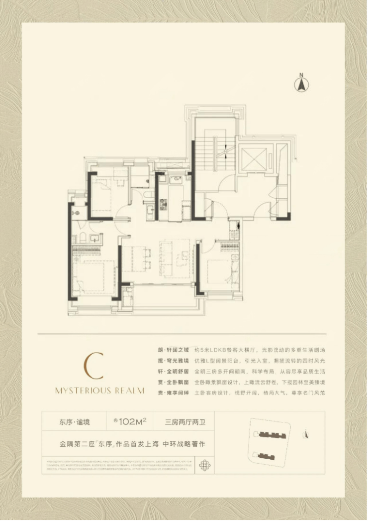 产品之一是建面约102平3房,3.5开间朝南,同面积段产品中罕见!拥有约5米面宽的LDKB超大横厅!奢阔尺度远超同级别产品!