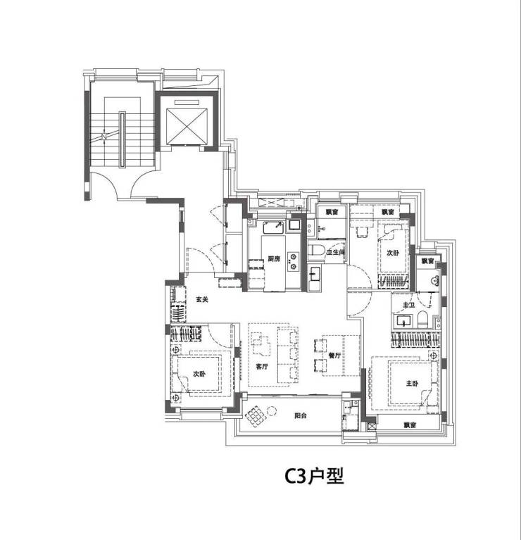 全卧瞰景飘窗设计+“独立”电梯厅,实用面积非常高!