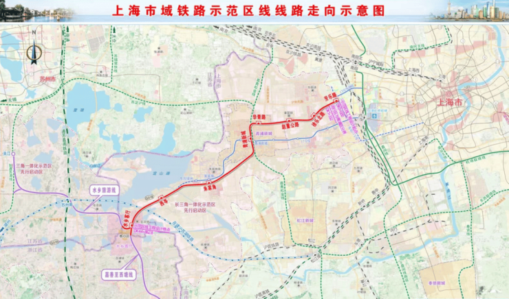 示范区线往西可以直通青浦华为研发中心,未来还可以直达吴江和嘉善,往东连接虹桥。