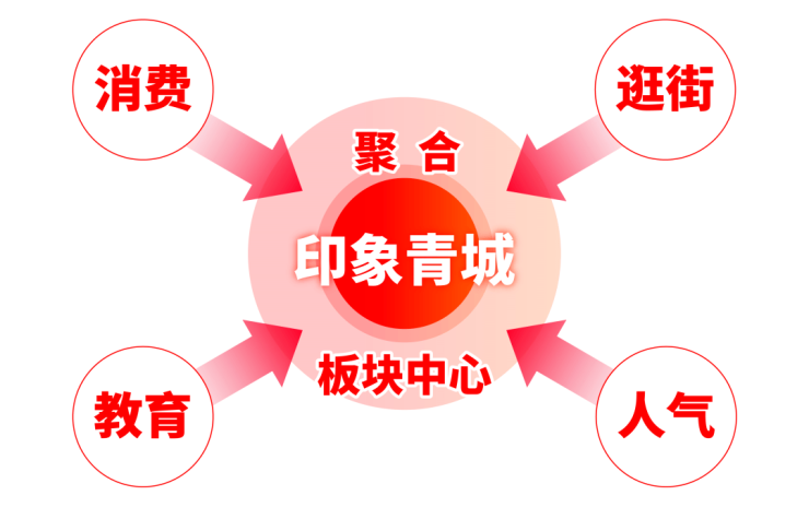 而印象青城整座大城由一轴一街一界面构成: