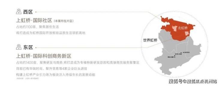 上虹桥整体规划东产西城两个片区,共计约167公顷,遵循“以人为本、产城融合、多元包容、活力共享”的理念,整体打造创新经济集聚区、中央商务配套区和高品质国际化社区。