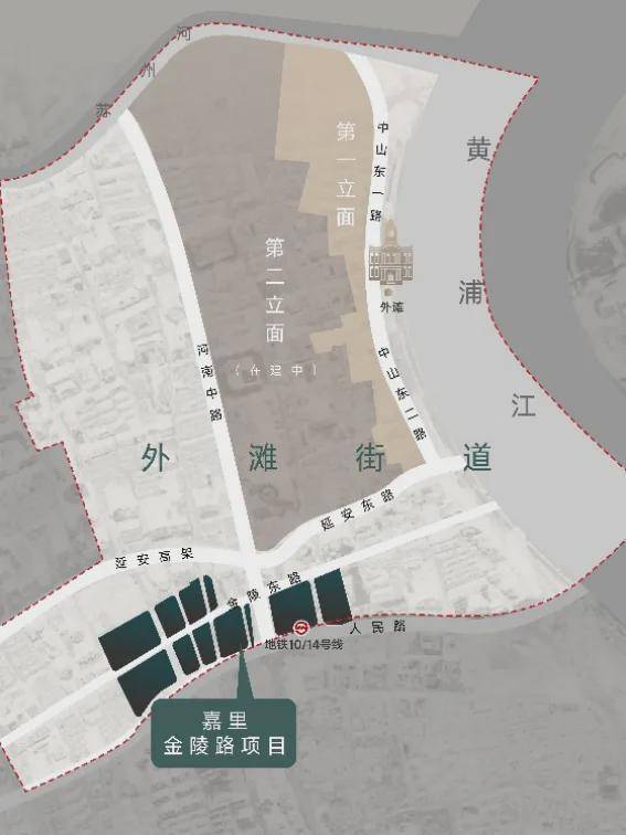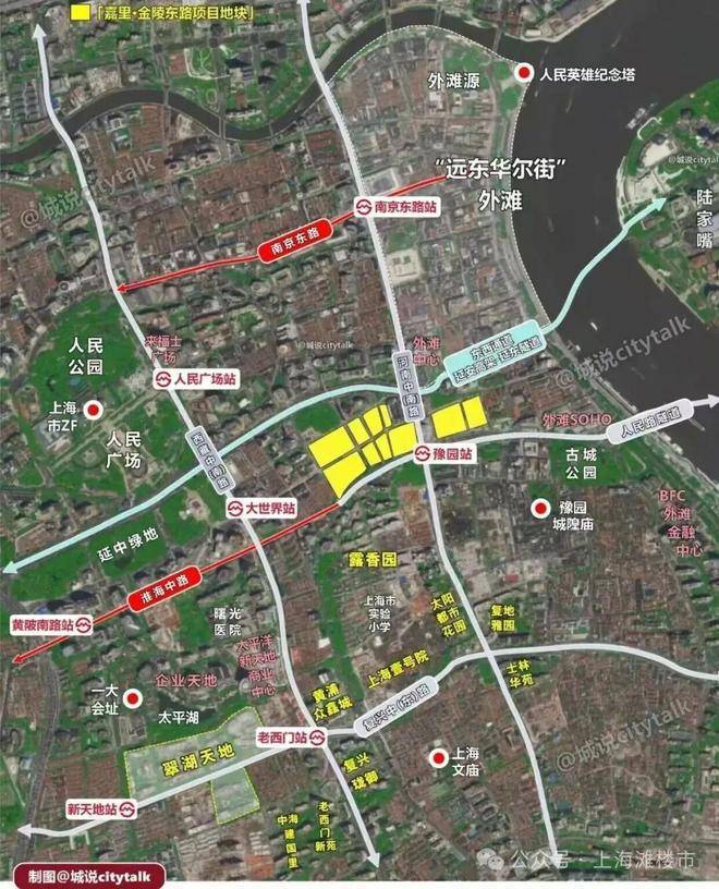 上海2035年规划中,黄浦区全区纳入中央活动区CAZ,地处黄浦核心的金陵东路,堪称CAZ之心:【外滩-豫园-新天地-人民广场】四大顶级板块环伺,【南京东路-淮海中路-豫园】三大世界级商圈步行可享。