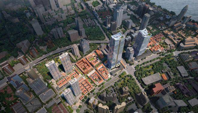 项目并非单一住宅,而是金陵东路城市更新中约67万方超级综合体的一部分——地块中还有2栋180米+240米高品质写字楼、约1公里骑楼风貌商业街区,由嘉里自持运营。这种“居住-办公-消费”无缝衔接的业态,不仅能为业主提供更优质的生活体验,更将持续为项目资产赋能。