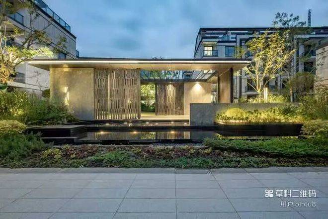 景观巧妙利用高差以中式院落空间递进关系为切入点,打造“【府】-【园】-【宅】”三重空间序列,形成“私密-半私密-半公共-公共空间”,打造三进归家动线。