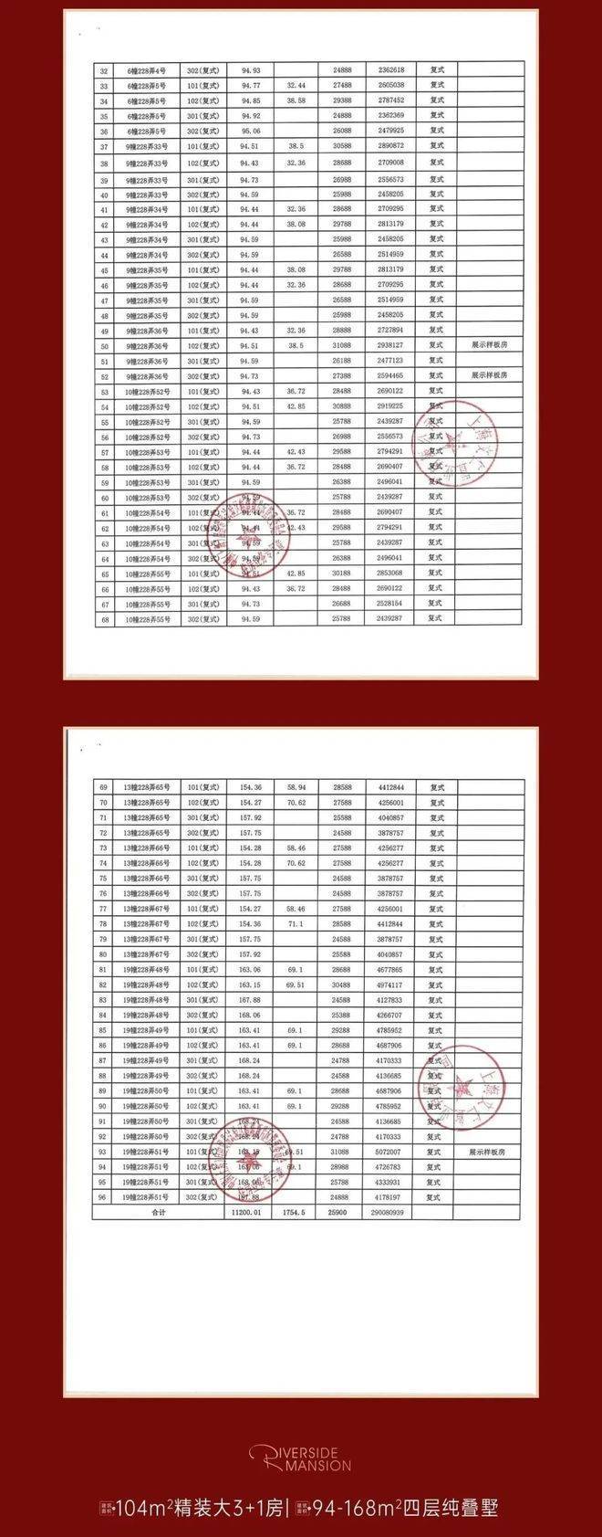 建面约94-155-158-163-168m²叠墅(四层)