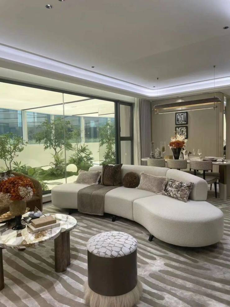 最让人震撼的是123户型客餐厅,面宽约6.6米,在拓展两个阳台后,客餐厅面积可达约40㎡,和150-160㎡客餐厅尺度相当。