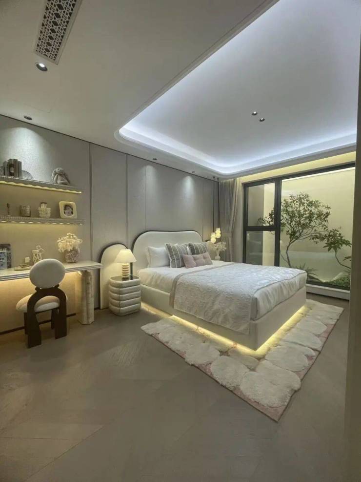 建筑汲取乌达克新古典美学,采用米色石材、白色幻彩铝板,勾勒出典雅高贵的建筑气质,极具辨识度与艺术感。