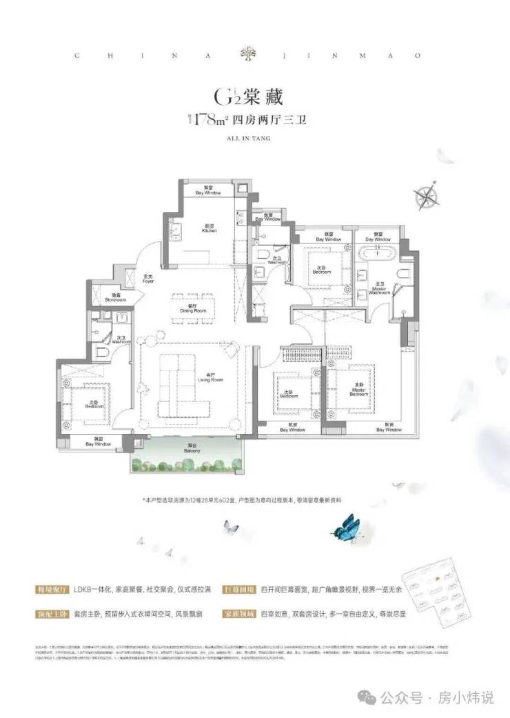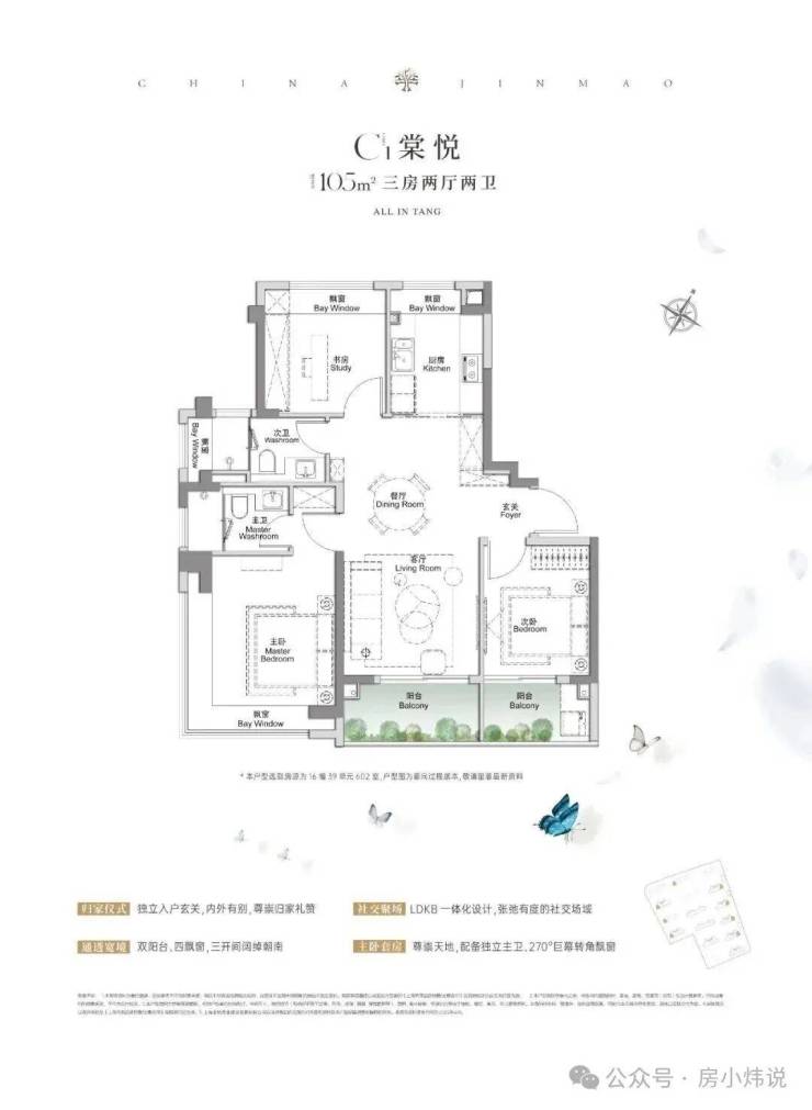 全景舱艺境美宅,标准层约3.1米层高、270度全景飘窗、LDKB一体化、南向跑道阳台、超12米南向全屏开间,无限视野尽收眼底,还有超金喜的满配精装,全上海只有央企金茂才能做得到。
