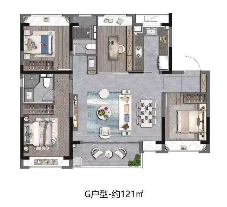 建筑面积约121㎡样板间实拍示意图