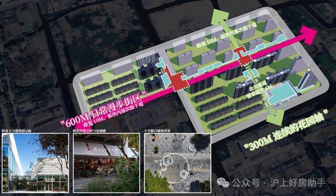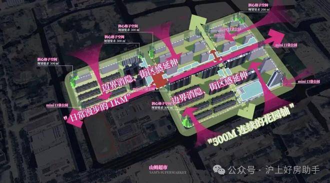 这些丰富的生活场景,则由两条景观轴线串联:一条是约300米的连续花园轴;一条是约600米的日常漫步街区。与此同时,项目在街角处还打造了多个口袋公园!