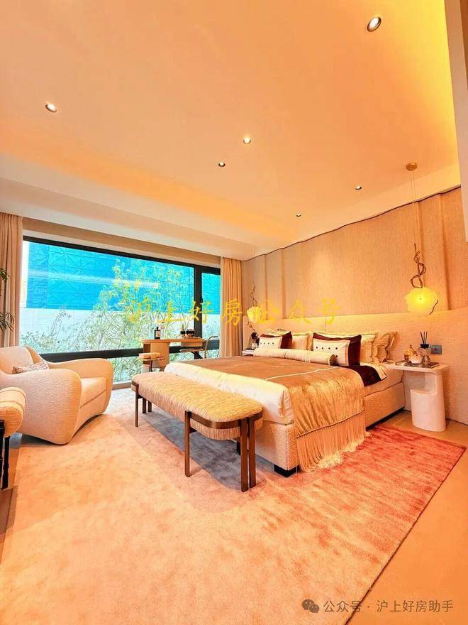 主卧拥有270度环幕飘窗,视野和采光优越,配备了高奢卫生间,空间感、尊崇感拉到顶格。