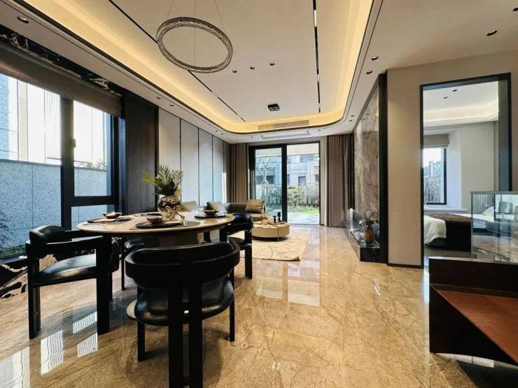 项目打造新中式立面风格,别墅1-3层、洋房1-2层采用来自巴西的维多利亚白天然石材干挂,营造高级、大气的建筑气质。