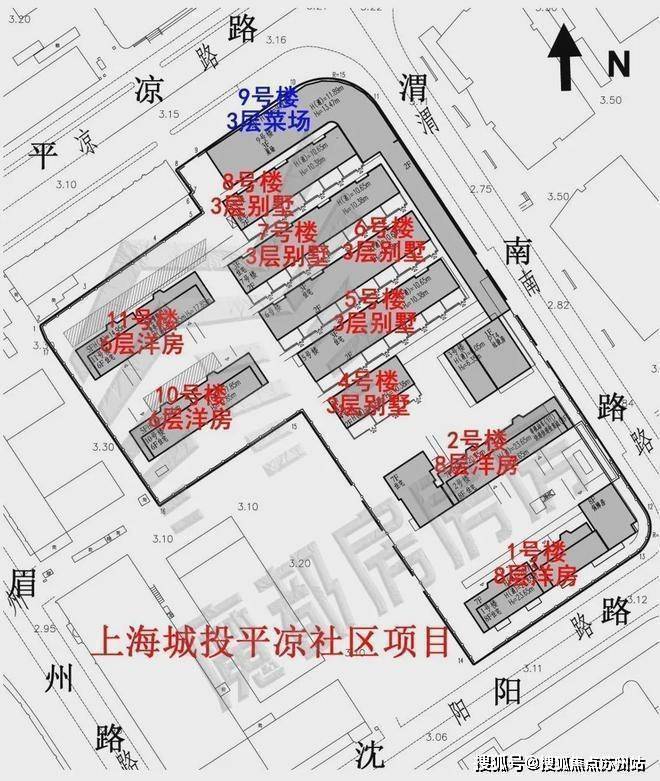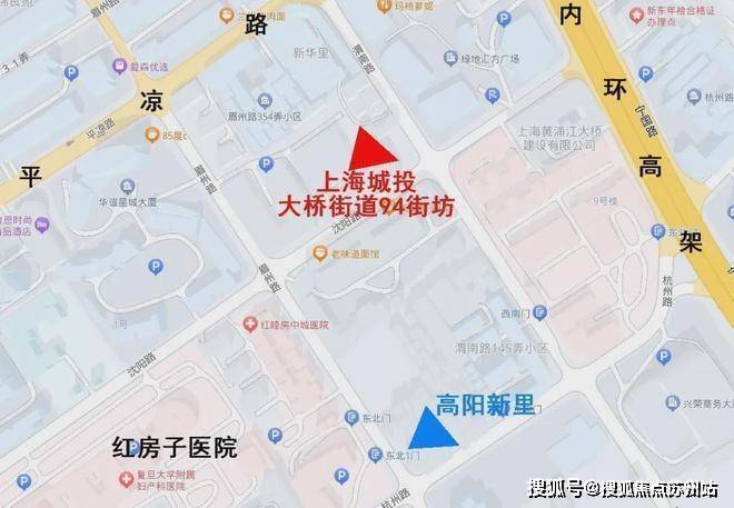 「興華里」(大桥街道94街坊)地块四至范围, 东至渭南路,南至沈阳路,西至02F1-02、02F1-03地块,北至平凉路。项目距离上海城投上一个板块内住宅项目高阳新里仅一个路口街区之隔,直线距离200米左右。